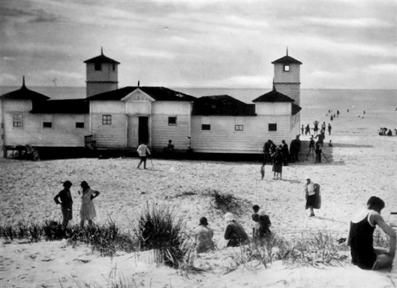 Do I wojny światowej kobiety na plaży więcej przykrywały ciało aniżeli je pokazywały. Jedna z córek hrabiego Józefa odnotowała: Nasze kostiumy kąpielowe sięgały poza kolana. Miały długie rękawy i długie bluzy. Wychowanie zgodne z katolicyzmem i wpajane od dzieciństwa poczucie nie tyle wstydu, ile szacunku do siebie i innych, wiązało się także z ówczesną modą na nieopalone ciało kobiety z wyższych sfer. Wychodząc z domu, w tym w drodze na plażę, długie przewiewne suknie z naturalnych materiałów szczelnie zakrywały sylwetkę, a rękawiczki i kapelusze ratowały od dotkliwych promieni twarz i ręce, które były podstawową wizytówką każdej arystokratki. Przy tym desing kapelusza świadczył o przynależności do konkretnej klasy w hierarchii społecznej.